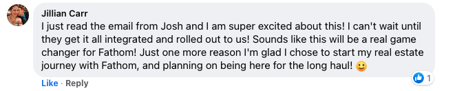 Upon learning of the acquisition in a company-wide Email from Harley, many Fathom agents reacted positively to the news: